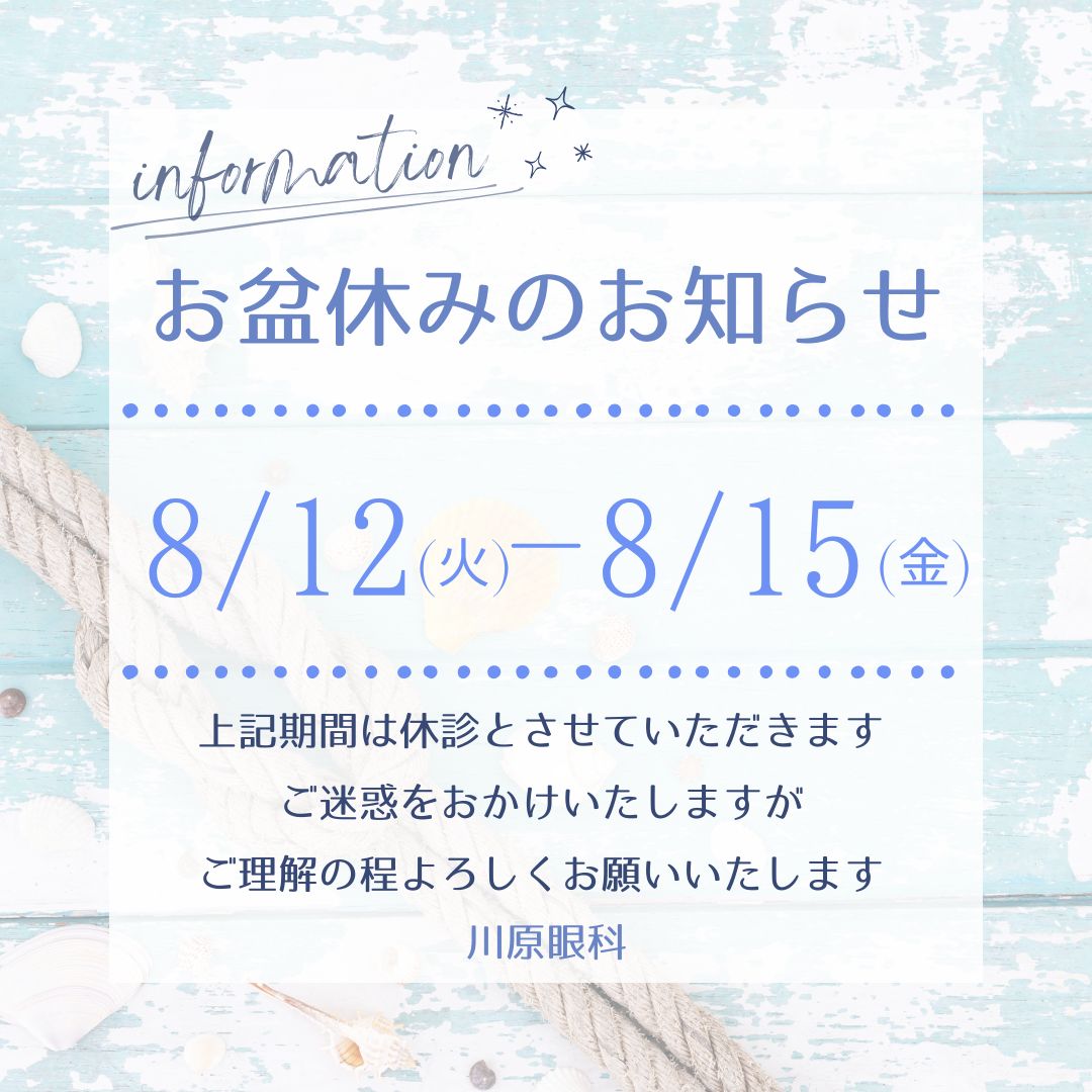 なお、川原眼科久山クリニックは、お盆期間中も通常通り診療を行っております。