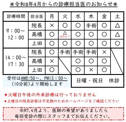 土曜日の院長診察は不定期です。