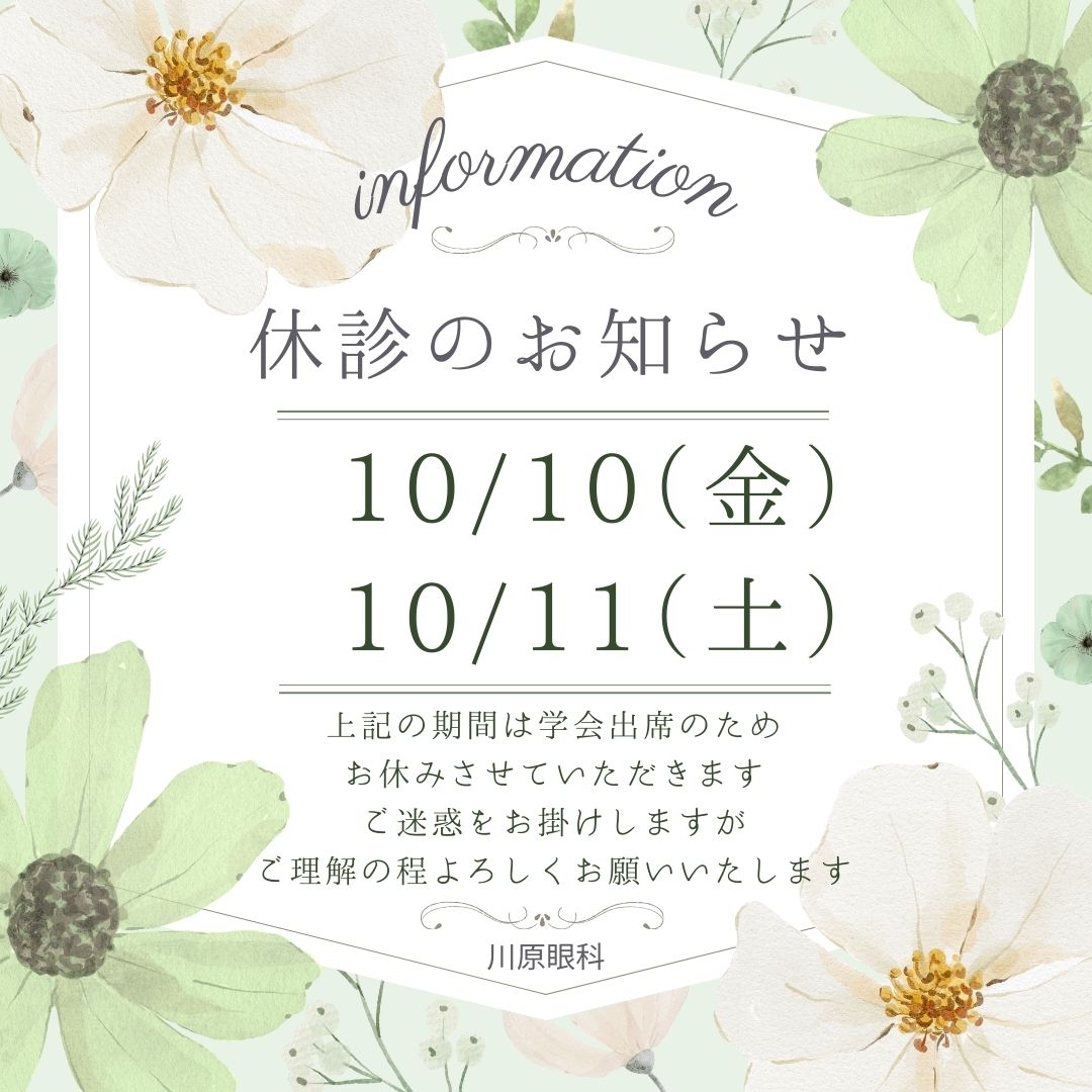 10/10(金)、10/11(土) 院長学会出席のため休診