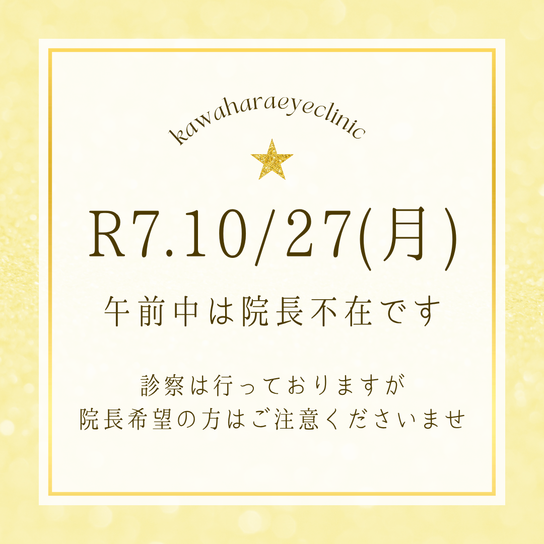 🌟10/27(月) 午前中 院長不在🌟 上記日程は通常通り診察は行っておりますが、 午前中は院長不在となります🏥 院長診察ご希望の患者様は、日程のご確認をいただきますようお願いいたします🍀 皆様にはご迷惑をおかけいたしますが、ご理解のほどよろしくお願いいたします😌