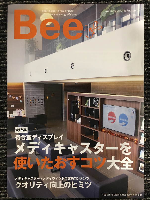 今回、この会社の情報誌である「Bee」の表紙に川原眼科の待合室が掲載されました!!!